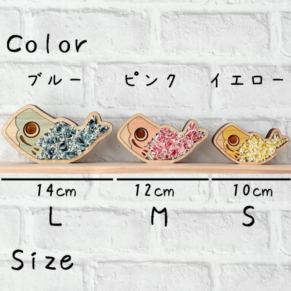3種類のサイズ(L・M・S)、3種類のカラー(ブルー・ピンク・イエロー)からお選び頂けます。