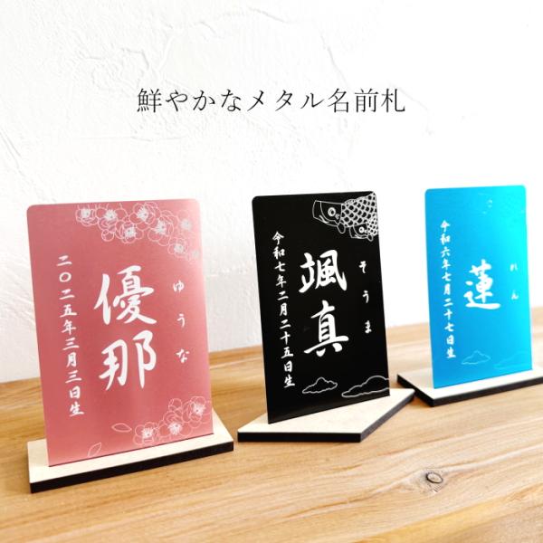 【お急ぎ制作】メタル名前札 金属 こどもの日 端午の節句 ひな祭り 桃の節句 初節句 名入れ 男の子 女の子 鯉のぼり ブラック 黒 ブルー 青 水色 ピンク