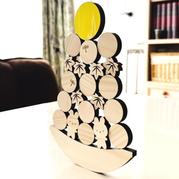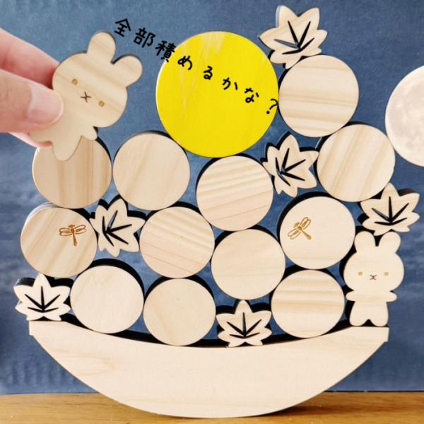 【国産紀州熊野ひのき】お月見積む積む 十五夜 秋 うさぎ お餅 積み木 バランス ゲーム おもちゃ 木製 知育 置物 飾り インテリア ナチュラル 可愛い 子供