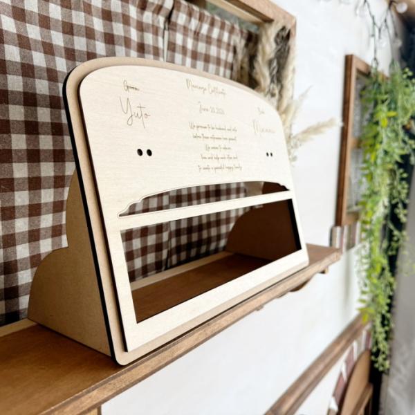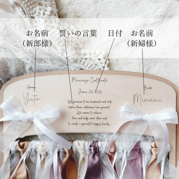 ゲスト参加型*リボンで彩る結婚証明書* 結婚式 披露宴 ブライダル 木製 名入れ 刻印 オーダー ナチュラル 可愛い ウェルカムスペース 新郎 新婦 少人数