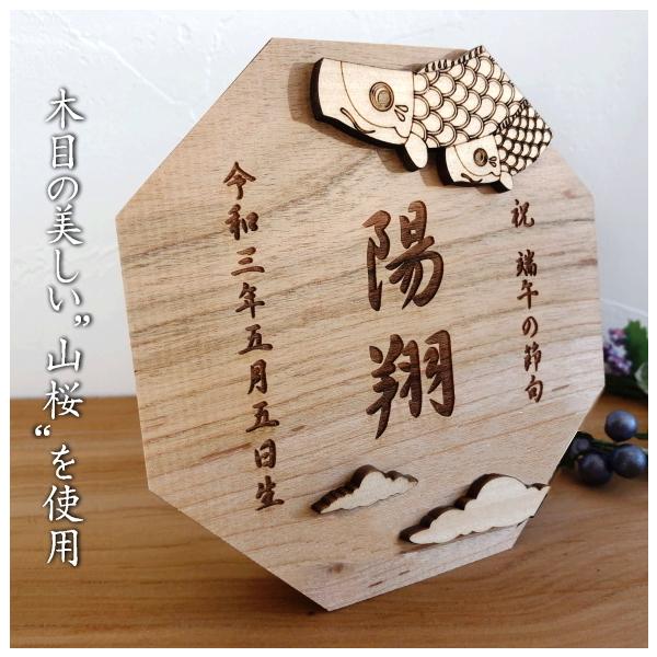 山桜 名前札 鯉のぼり 子供の日 端午の節句 男の子 木札 立札 節句 初節句 節句祝い 出産祝い 命名 名前旗 兜 高級 プレゼント ギフト 名入れ オーダーメイド