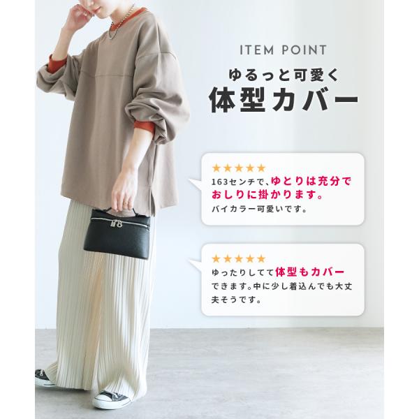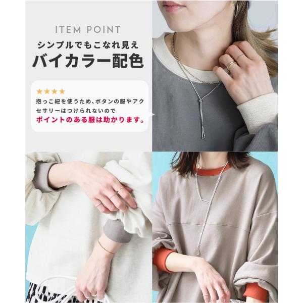ビッグシルエット配色リブプルオーバー R22214-k レディース トレーナー 長袖 バイカラー カジュアル シンプル ネコポス発送10