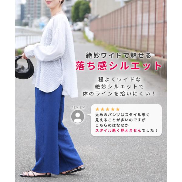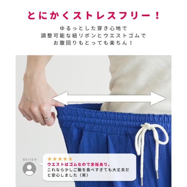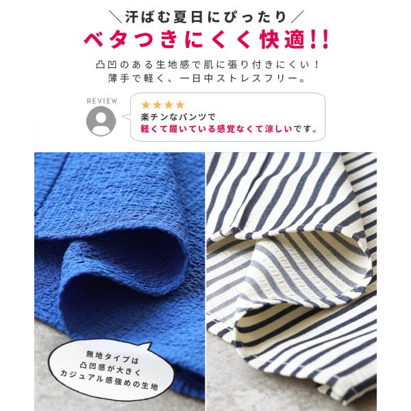 無地/ストライプエンボス加工イージーパンツ y2819・y2818 レディース パンツ ワイドパンツ ハイウエスト ポケット 楽ちん 夏 ネコポス発送10