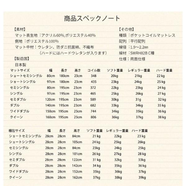 中材:ウレタン、不織布、抗菌綿、ポケットコイル