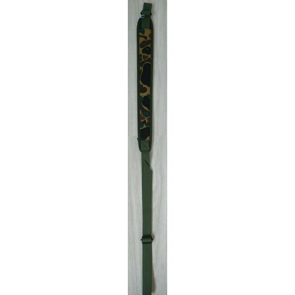 ベルト巾 25mmの二連・オート用負皮です。裏には特種素材が貼ってあるので、肩から滑ることはありません。皮製とは違い布製なので雨などに濡れて劣化し切れる心配がありません。また、このスリングはシャルムの経験から、ストラップに親指を掛けて握ると非常に楽に背負える工夫がされています。是非、お試し下さい。