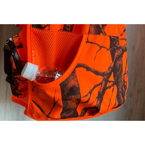 従来のハンティングベスト同じように肩当部分に耐久性高いキルティング生地を採用し、より素早い装填のため弾薬ホルダーを下部の2つのポケット内に配置しました。通気性の良いメッシュ生地はそのまま体内からの熱や湿気を放出し、体の負担を和らげます。過酷な現場をひたすら歩く狩猟専門ウェア用として、現役ハンターの意見を取り入れ徹底的にデザインにこだわりました。