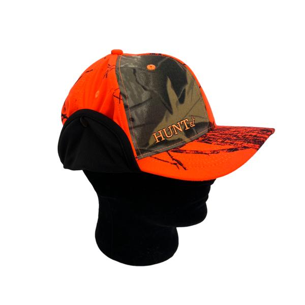 HUNT& (ハントアンド) ハンティングキャップはその名の通り、ハンティングのためだけにデザインされたキャップです。冬の猟期に必要な耳当てと安全性高いオレンジ色、狩猟バッジを取り付ける2個の穴、視界が広く木や枝に引っかかりにくい短いツバ、長時間被っても頭が痛くなりにくい伸縮性高いストレッチフィットインナーバンド等、現役ハンターの意見を取り入れた狩猟専用のキャップになりました。
