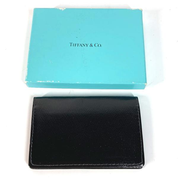 美品 TIFFANY&Co. ティファニー ロゴ 名刺入れ パスケース 2つ折り カードケース ブラック メンズ【中古】
