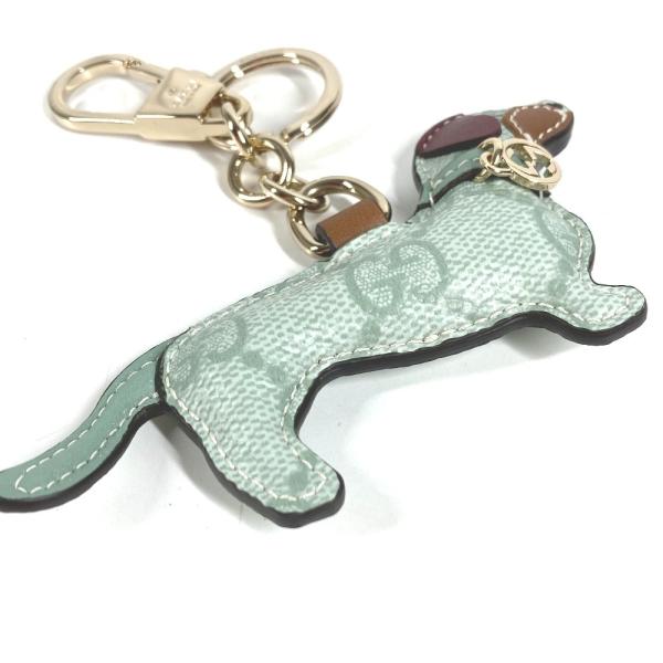 新品同様 GUCCI グッチ 821812 ドッグ シェイプ 犬 キーホルダー GGスプリーム GGエンブレム バッグチャーム ライトグリーン【中古】