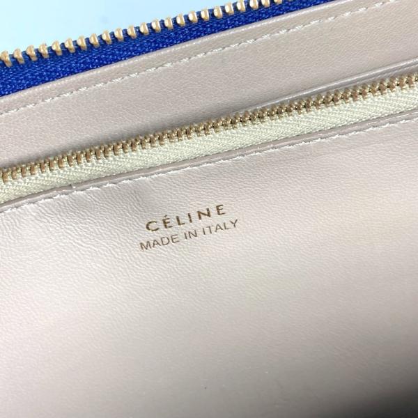 CELINE セリーヌ ロゴ ロングウォレット ラウンドファスナー 長財布 ブルー ユニセックス【中古】