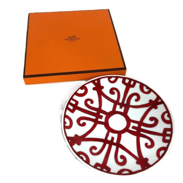 未使用 HERMES エルメス ガダルキヴィール 17cm プレート 食器 皿 お皿 レッド ユニセックス【中古】