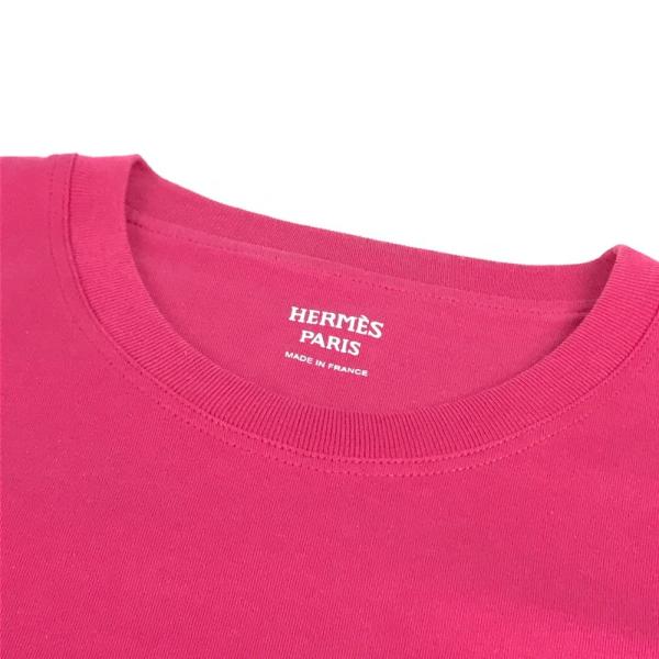 HERMES エルメス 刺繍入れ モザイク Hロゴ ポケット アパレル Tシャツワンピース ラウンドネック ワンピース ピンク レディース【中古】