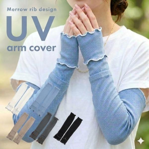 UVアームカバー アームカバー 接触冷感 ロング 60cm リブ メロウ フリル 二の腕カバー 紫外線対策 UVカット 日焼け防止 ひんやり 冷房対策 レディース かわいい