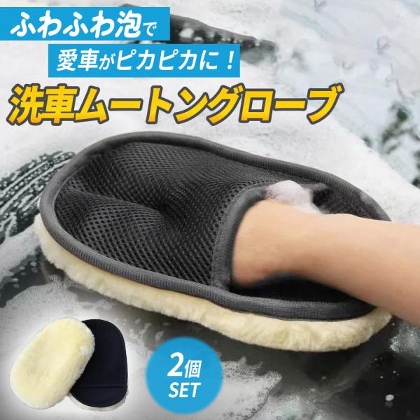 洗車グッズ 洗車グローブ 洗車スポンジ 洗車ムートン ムートングローブ 洗車タオル 洗車用品 2個 手洗い ハンドモップ