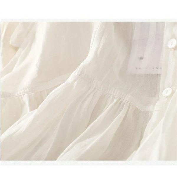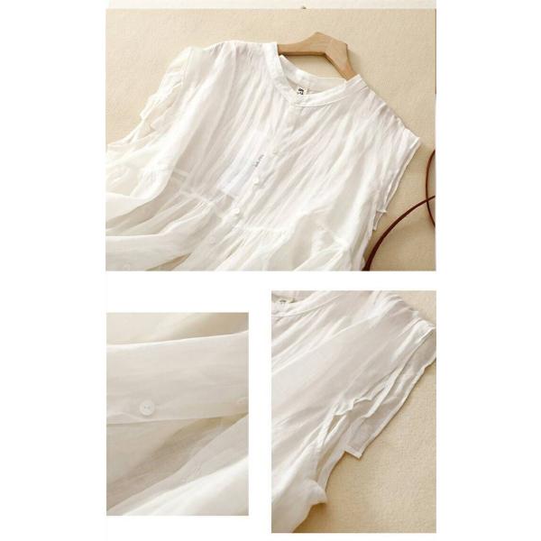 シャツ シャツブラウス レディース 夏 トップス ノースリーブ 半袖シャツ アウター 綿麻シャツ 無地 白シャツ ホワイトシャツ ショート丈