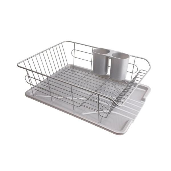 パール金属 食器 水切り かご 水が流れる トレー付 ヨコ置き タイプ グレー アルデオ H-5687