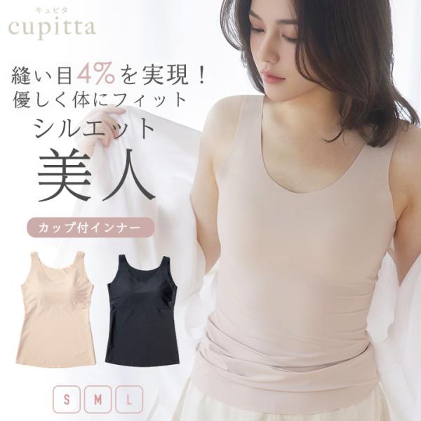 ノンワイヤー カップ付タンクトップ シームレス レディース インナー cupitta キュピタ ブラトップ カップ入 ブラキャミソール 下着 ブラ