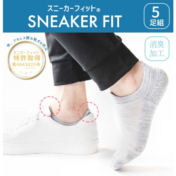脱げない 靴下 スニーカーソックス メンズ 選べる3タイプ 5足組 靴ずれ防止 くるぶしソックス スニーカーフィット 踵 24.5-27cm 27.5-30cm