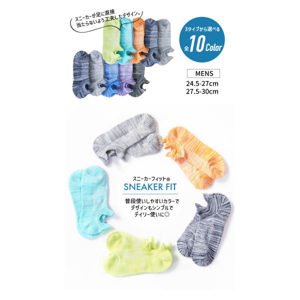 メンズ 5足 スニーカーフィット 全3タイプ 10カラー 24.5-27cm 27.5-30cm