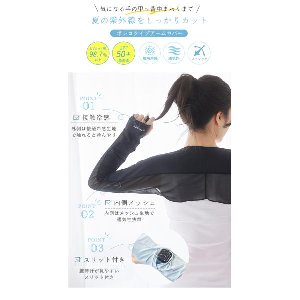 UVカット率98.7% UPF50+ 接触冷感 アームカバー ボレロ ロング丈