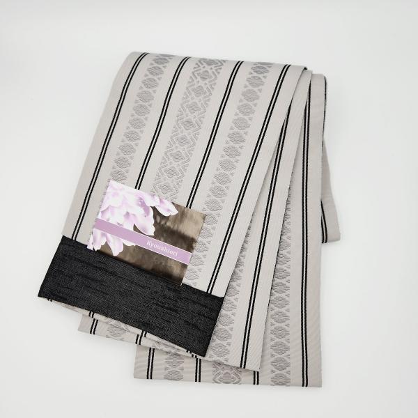 半巾帯 献上柄 小袋帯 グレー 黒 ポリエステル 両面 和装 着物 小紋 浴衣 浴衣小物 着付け小物 レディース 女性 クリックポスト対応可