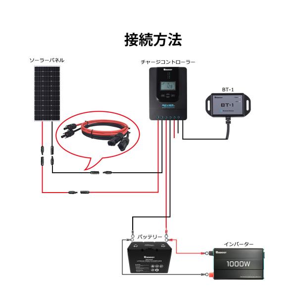 RENOGY レノジー ソーラーパネル 延長ケーブル 両端MC4コネクター付き 3.5SQ 赤・黒 各610cm 許容電流44A