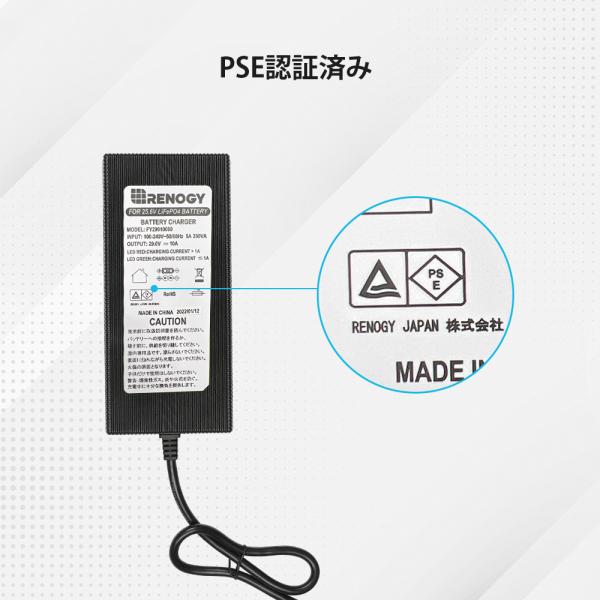 Renogy 24V 10A バッテリー充電器 リン酸鉄リチウムイオンバッテリー専用 AC-DC充電器 バッテリーチャージャー 操作簡単 PSE認証済み レノジー