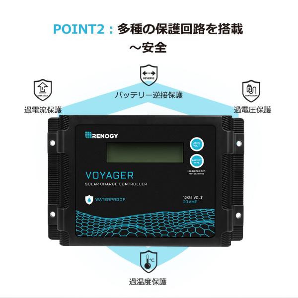 RENOGY レノジー PWM ソーラー チャージ コントローラー 20A VOYAGER シリーズ 12V/24Vバッテリー兼用 液晶画面 防水【説明書付き】