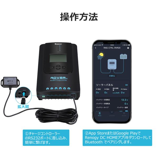 RENOGY 40A MPPT チャージコントローラー ソーラー発電専用 太陽光 12V/24V 自動認識 独立型 ソーラーチャージコントローラー Bluetoothモジュール レノジー