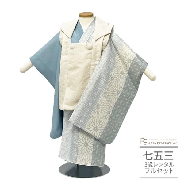 七五三 着物 3歳 男の子 レンタル 七五三(3歳男の子被布)シンプル ツートン ブルー 水色 アイボリー 小花 無地 0528
