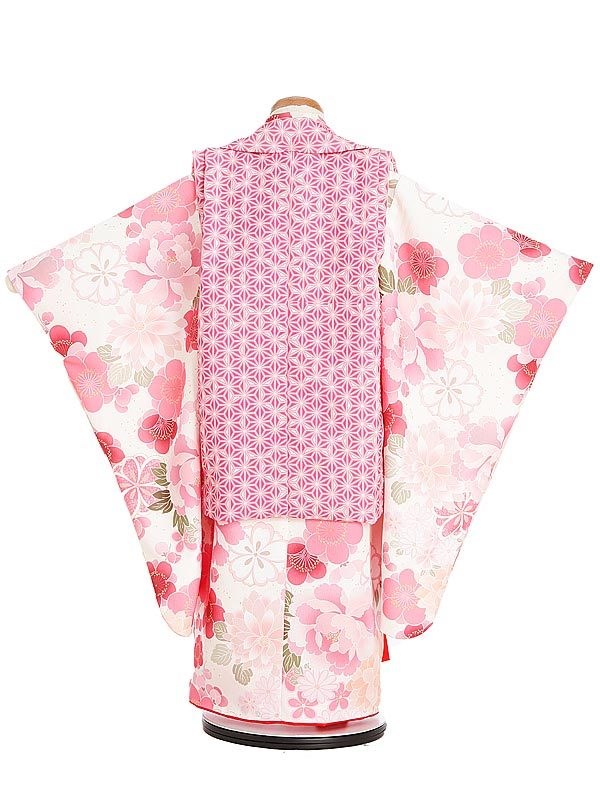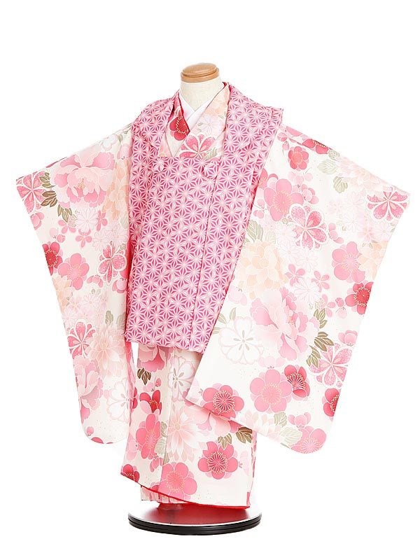 七五三 着物 3歳 女の子 レンタル 正統派 古典 ピンク アイボリー KAGURA麻の葉 ぼたん 梅 0359