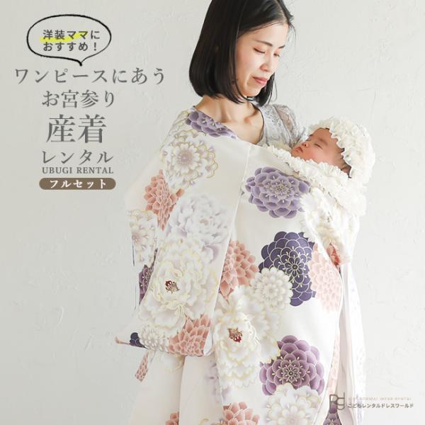 お宮参り ナチュラル 産着 くすみブルー 掛け着 レンタル 女の子 初着 初着セット ママ 0005 ベージュ ラフィネココ ブランド 洋風レース スタイ 花 おしゃれ