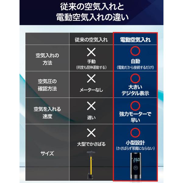 ■12000mAh大容量バッテリー&高効率空気入れ