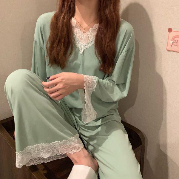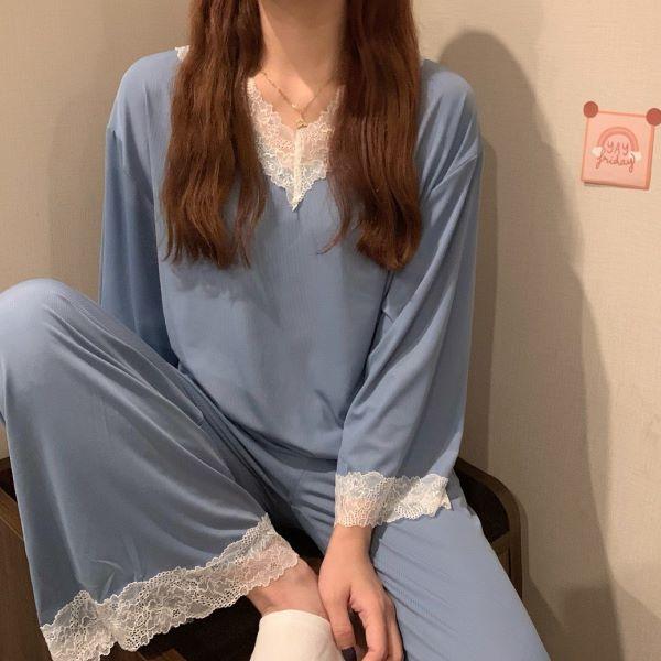 パジャマ ルームウェア レディース レース 長袖 セットアップ 春秋
