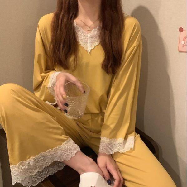 レースがエレガントなルームウェア上下セット。
