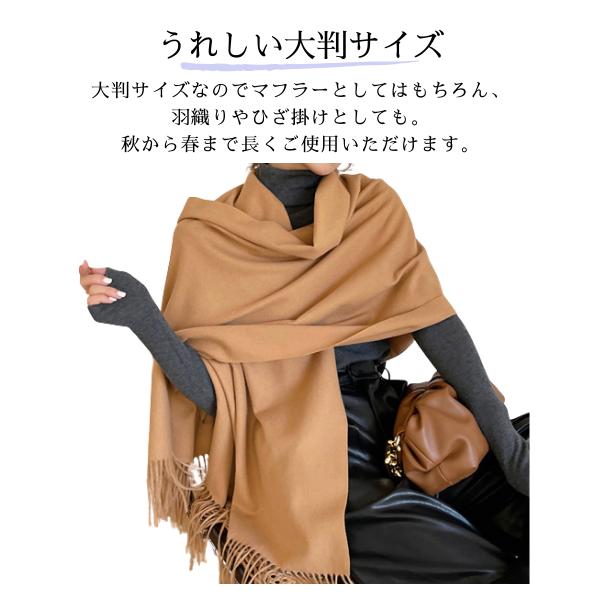 防寒にはもちろん、アクセントにも使えるカシミヤタッチ大判ストールです。