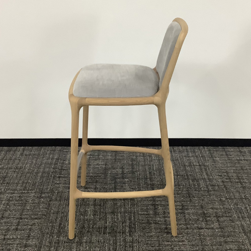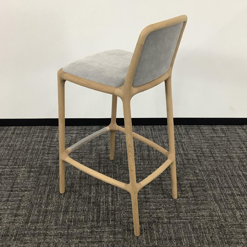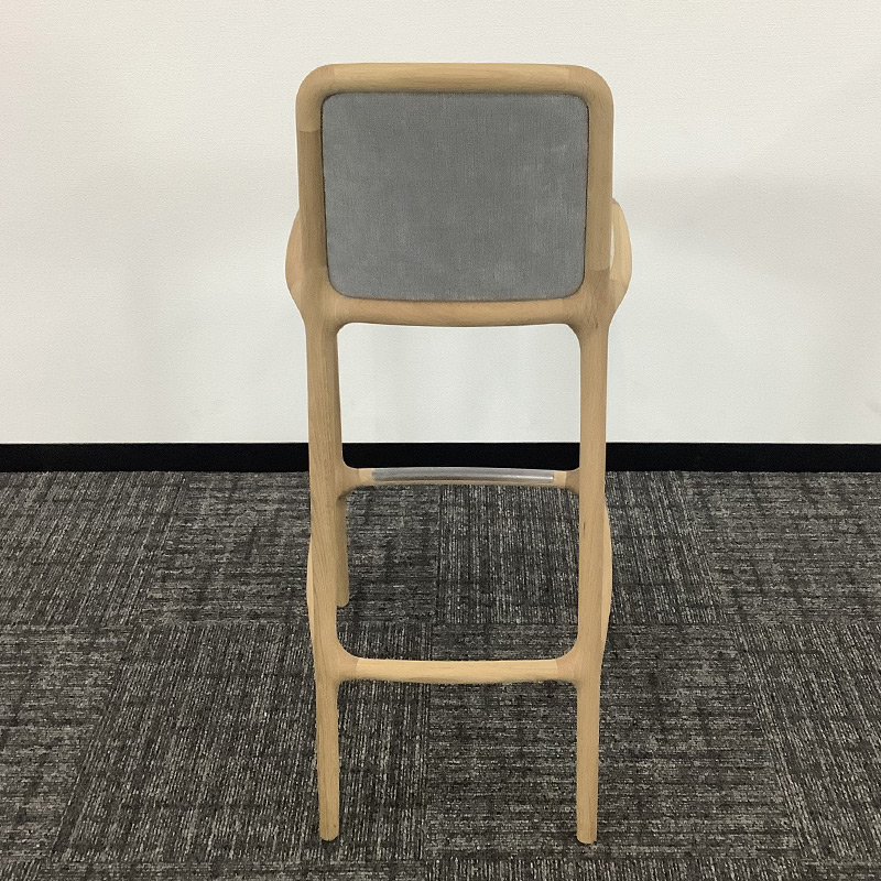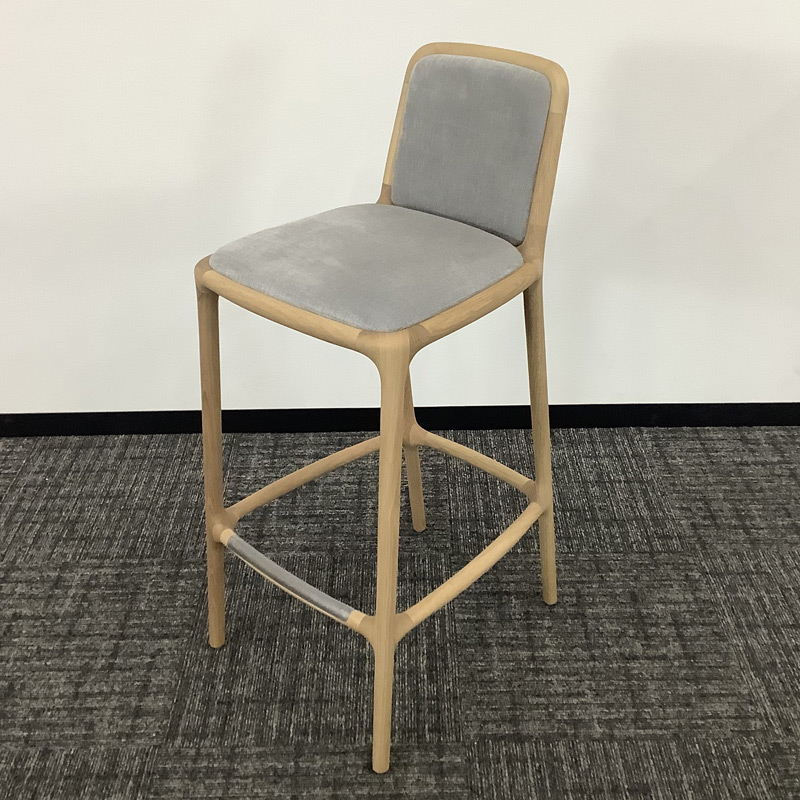 このハイスツールのポイントは、座り心地を妥協していないこと。カウンターに合わせやすい高さでありながら、背もたれやパッディングの採用によって椅子としての快適性を併せ持っています。