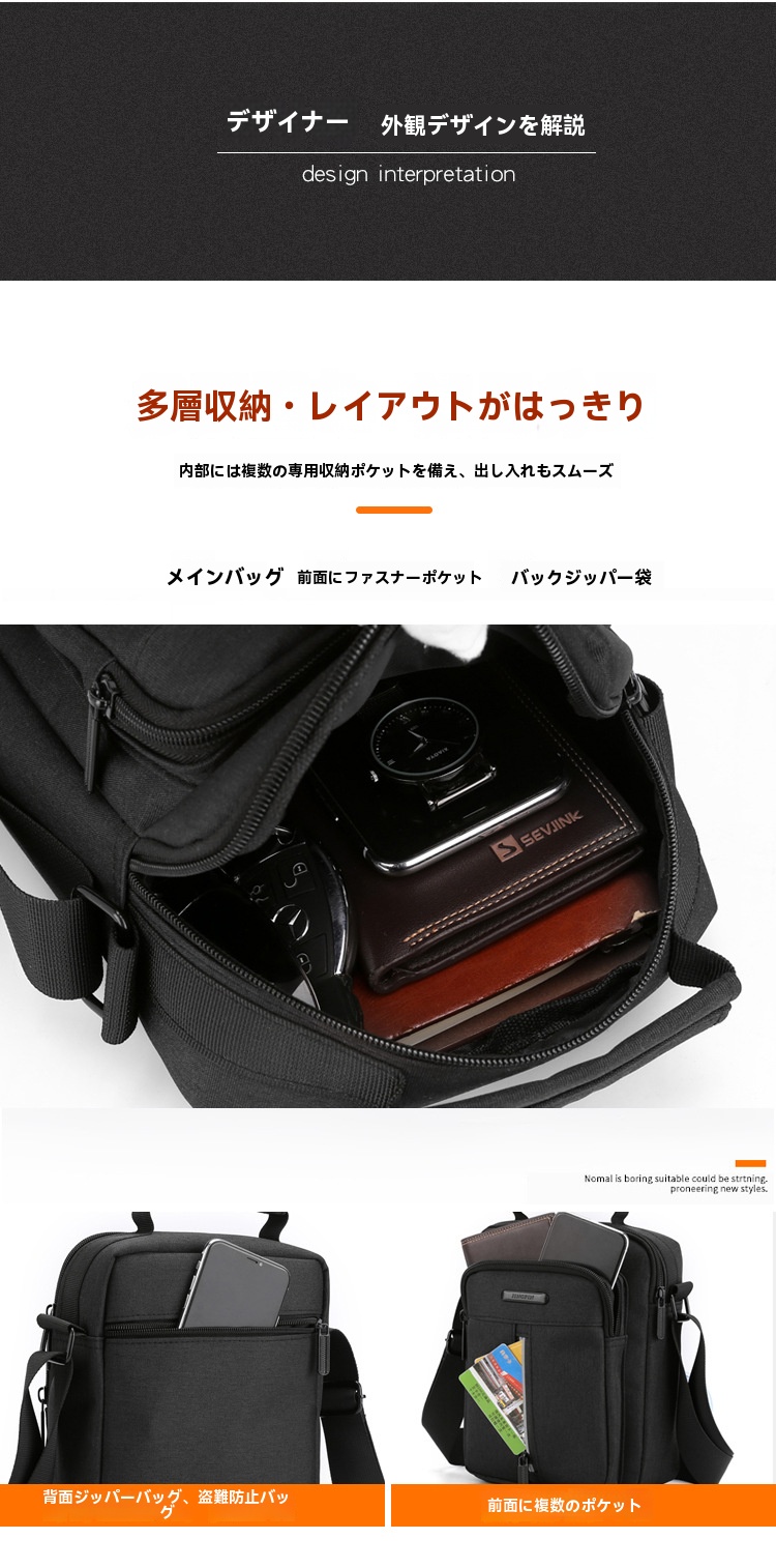 コンパクト収納、旅行用ケース、メンズバッグ、軽量ショルダー、撥水カバン、通勤バッグ、ナイロン鞄、タブレット収納、斜め掛け、ポケット多め、カジュアルデザイン、ビジネス用、デイリーユース