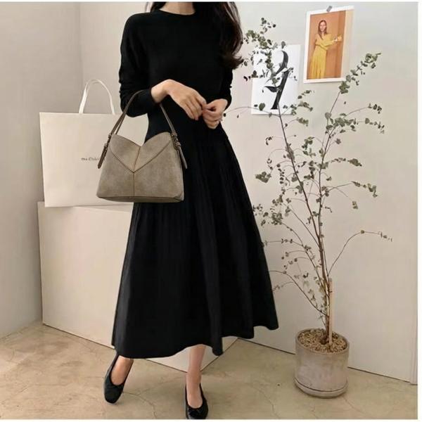 レディース 春 秋 ワンピース 長袖 ギャザー切り替えロングワンピース シャツワンピ ゆったり 体型カバー 無地 ワンピース レディース 上品な落ち感 40代 50代