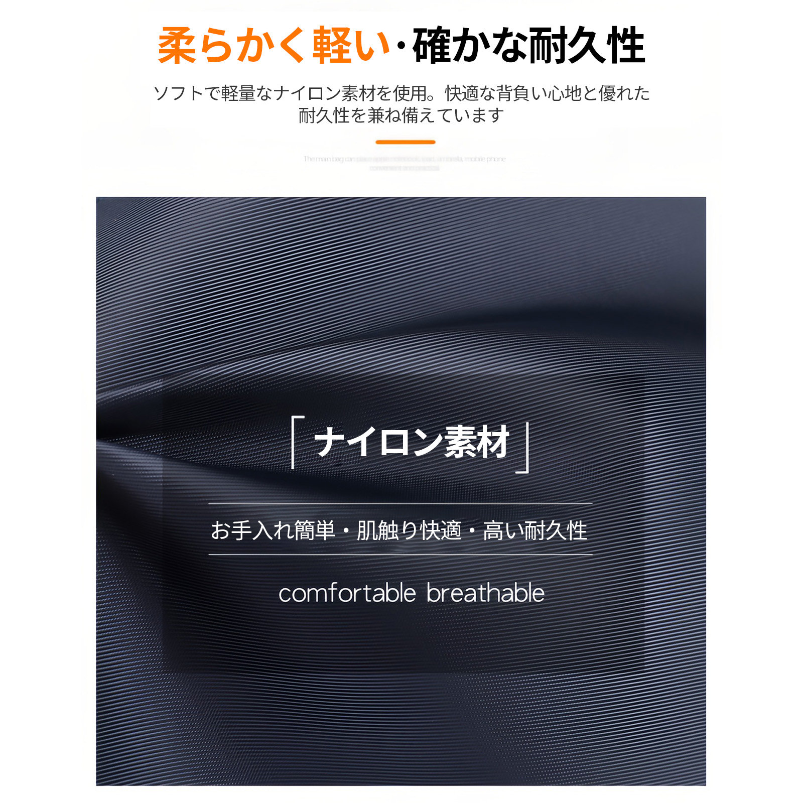 素材特性:ナイロン生地のため、縫製部に軽微なシワや織りムラが生じる場合があります。