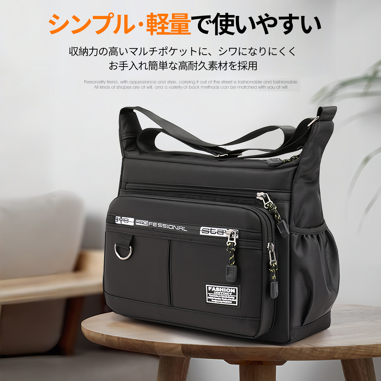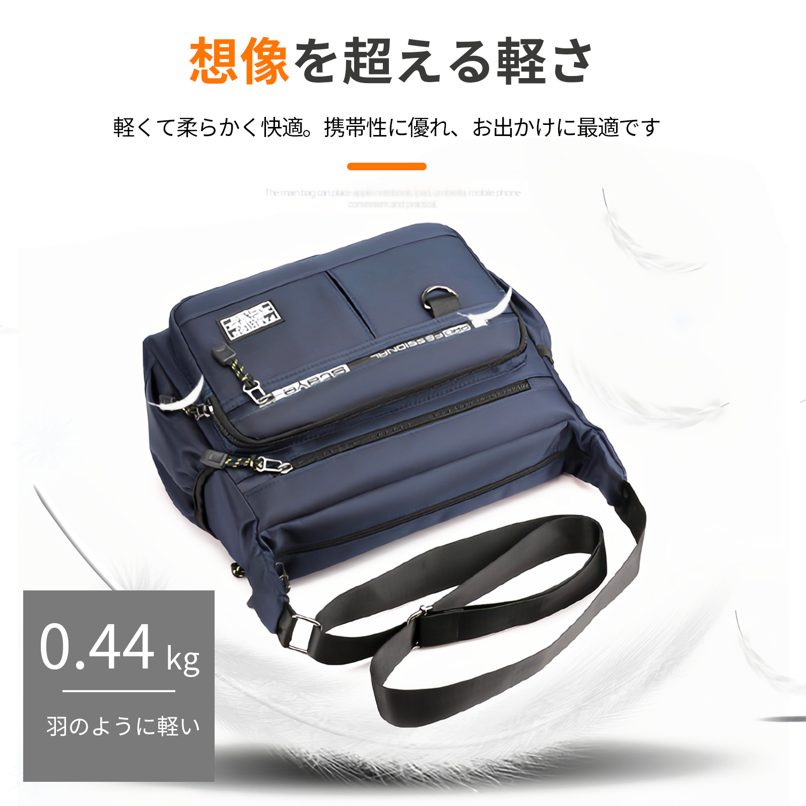 爆買 軽量で撥水性に優れた多層収納ショルダーバッグ。