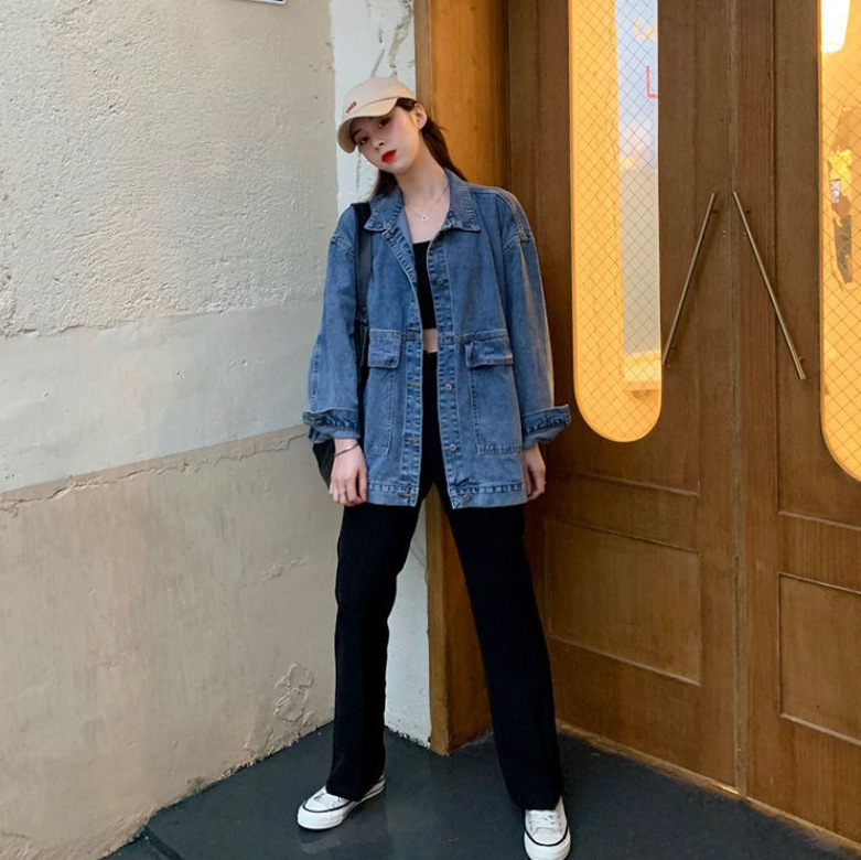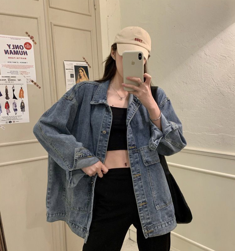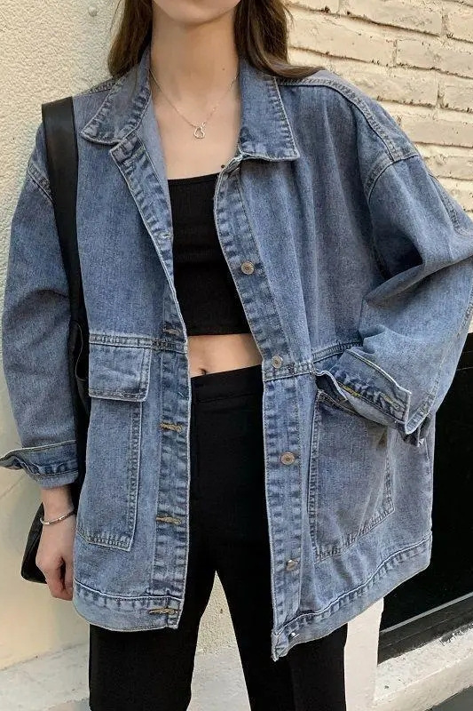 デニムジャケット ジージャン gジャン レディース オーバーサイズ 長袖 ポロ襟 前開き ボタン ゆったり 体型カバー 羽織り カジュアル 通勤 通学 春 秋 冬