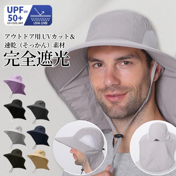 【シーズンエンドセール】日よけ帽子 メンズ UVカット 通気性抜群 撥水 軽量 つば広 後ろカバー付き 調整可能 夏用 熱中症対策 アウトドア 登山 釣り 農作業
