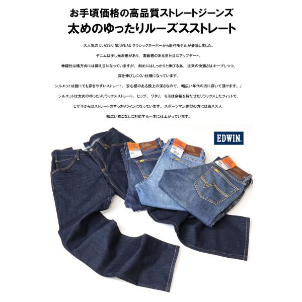 EDWIN エドウィン CLASSIC NOUVEAU ストレッチデニム ルーズストレート パンツ ジーパン ジーンズ メンズ 快適 伸縮 SALE セール 太め KU04 送料無料