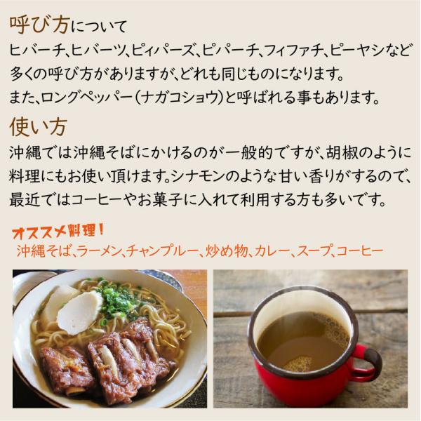 【使用方法】沖縄そばにかけるのが一般的ですが、胡椒のように料理にもお使い頂けます。シナモンのような甘い香りがするので、コーヒーやお菓子に入れて利用する事もできます。