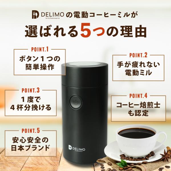 Delimo公式販売 電動コーヒーミル コーヒーグラインダー プロペラ式 カッター式 電動「日本企業が企画開発・販売・サポート」Electric coffee grinder mill