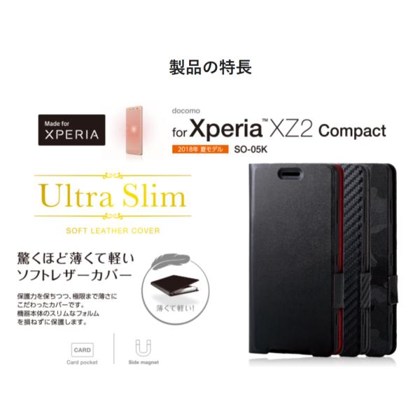 Xperia XZ2 Compact SO-05K ソフトレザーカバー ULTRA SLIM ソフトレザー [驚くほど薄くて軽い] マグネット付き スタンド機能 PD-XZ2CPLFUBK エレコム製