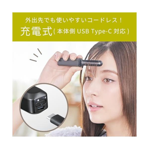 コイズミ ヘアアイロン コードレス 前髪アイロン USB充電式 持ち運び コンパクト キャップ付 ブラック KHR-6420/K