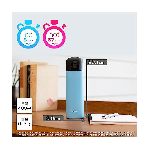 タイガー魔法瓶 (TIGER) 水筒 480ml マグボトル ワンタッチ 軽量 ステンレスボトル コンパクト 真空断熱 保温保冷 ホワイト MKA-K048W