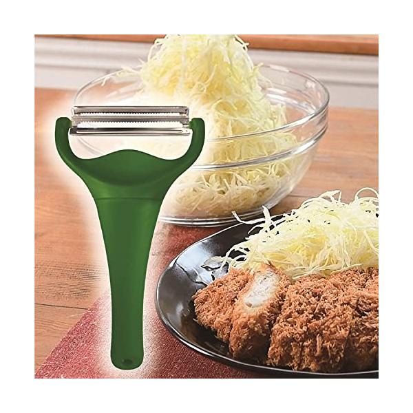 グリーン(単品)/ピーラー/CBP-04G・2枚刃採用で、同じ時間で2倍の量の千切りキャベツを削ることができます・耐熱温度:120℃・本体重量:37g・サイズ:180x106x37mm・生産国:中国